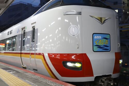 特急くろしお デビュー60周年だそうです おめでとう! 60周年を記念して、287系にラッピングが施されました。 7月5日の団体ツアーの臨時列車から運行を開始するということで、早速見てきました。 団体ツアーは 「くろしお60周年記念号で行く 南紀白浜への旅…